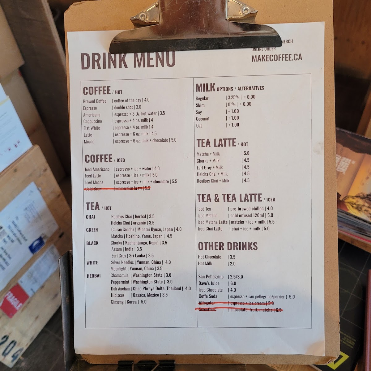 MAKE Coffee + Stuff offers a thoughtfully curated menu that balances classic café favorites with carefully crafted specialty drinks. The menu feels straightforward and inviting, with comforting beverages designed to suit quiet mornings, productive afternoons, or relaxed catch-ups.